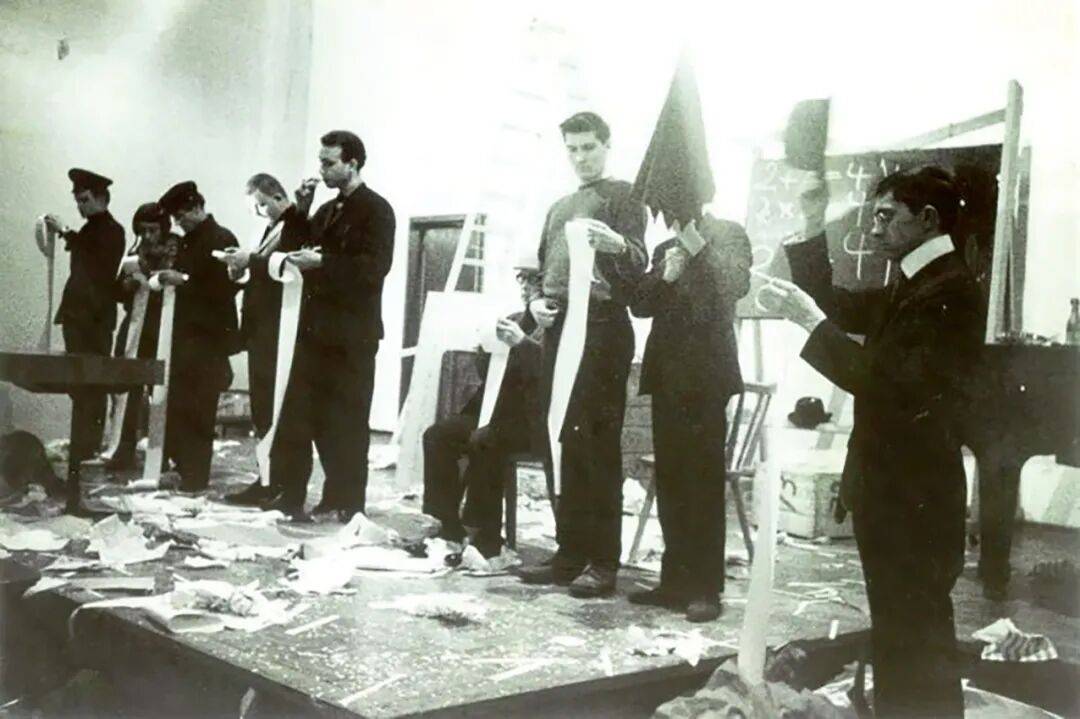 艺术节正在杜塞尔多夫艺术学院的会堂及第行,为期两晚。第一晚,正在节目标一起头,勾当的就被撒向了不雅众席,漫天飘动的霎时掀起了不雅众的情感。由马修纳斯撰写,内容是激浪派的宣言:“断根世界上资产阶层的病态、‘智力’的、专业的以及贸易的文化,断根世界上无生命力的艺术,仿照的、人制的艺术,笼统的艺术,幻想的艺术,数学化的艺术,断根世界上的‘欧洲从义’!”因为这一行为事先没有和从办人员筹议,本来要做开场白的让-皮埃尔·维尔海姆正在上台后颁发了一段机智的讲话:“《纸片》(Paper Piece) 出格适合做为序曲,由于它打破了舞台和不雅众之间的隔离。”〔30〕维尔海姆口中的《纸片》是当晚本来要表演的第一件做品,由本杰明·帕特森(Benjamin Patterson)于1960年创做的行为艺术表演,因为其表演中同样也有将纸片抛撒、搬运、分发给不雅众的环节,故维尔海姆指导不雅众认为宣言的抛撒也是《纸片》表演的一部门。马修纳斯正在本场勾当中也贡献了本人的行为做品《留念阿德里亚诺-奥利维》(图17) 。舞台上,由白南准、阿瑟·科普克、沃尔夫·沃斯特尔等一众艺术家一字排开,每人手里都拿着一张纸条,纸条上别离写着某个数字;当该数字被叫到时,表演者必需进行一个小动做:1。 用伸出的食指指着或人;2。 指着地板或天花板;3。 坐下;4。 蹲下;5。 拄着手杖或预赛;6。 打开和封闭雨伞;7。 鞠躬;8。 顿脚;9。 。〔31〕