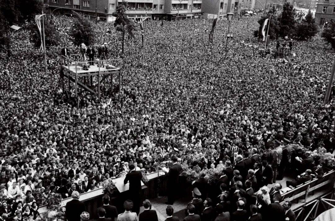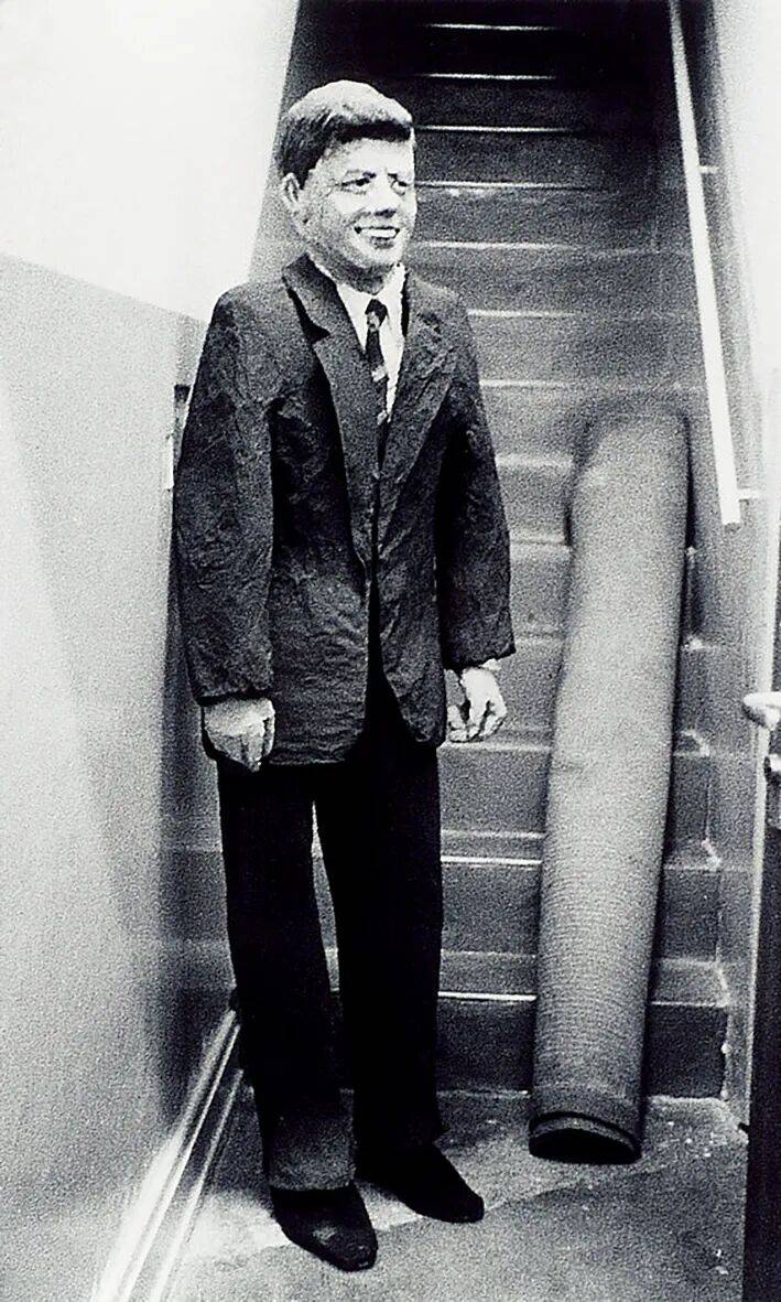 取汗青前卫从义试图否决和否认过往的老例分歧,新前卫的“新”并不正在于形式言语的绝对原创。相反,它只是将汗青前卫的反美学转换成了艺术品,将越界变成了老例。正如哈尔·福斯特指出的:“若是说现成品和拼贴挑和了那些关于有表示力的艺术家和原创艺术做品的资产阶层准绳,那么新现成品和新拼贴则以反复性反而恢复了这些准绳。同理,若是说达达了不雅众和市场两个方面,新达达的姿势则是顺应了它们,由于不雅众对于这类不单有了心理预备,简曲是渴求它的刺激。”〔20〕易而言之,当上述这些前卫手法都成为一种商定俗成的老例,也就不存正在严酷意义上的气概门户,任何自诩前卫的艺术家正在利用这些形式言语时,并不消担忧要为此缴纳“版权费”。如上所言,新前卫的“新”此时已不再表现为形式上的冲破,而是转向一种不雅念层面的性沉构。20世纪60年代,这种具体表示为对消费从义、操控取冷和认识形态的质疑,以及对和后欧美现代化沉建中文化焦炙、汗青断裂取从体性危机的深刻反思。二和竣事后,欧洲蒙受了分歧程度的损耗,包罗、意大利、法国正在内的欧洲保守列强都面对着推倒沉建的现实。伴跟着雅尔塔系统简直立,1946年英国前辅弼丘吉尔正在美国威斯敏斯特学院颁发“铁幕”,正式拉开了美苏冷和的序幕。此后20年,马歇尔打算的奉行也令“铁幕”以西的欧洲送来了前所未见的繁荣,正在这之中,西德异军突起,其经济增加速度以至赶超了取其相邻的诸多国度。西德的兴起有赖于两个方面:一方面,是打败国基于取欧洲经济此前的内正在联系,便于1947年将西德纳入复兴欧洲的一揽子打算傍边〔21〕;另一方面,以阿登纳为首的执政党基平易近盟正在1949年上台后,奉行包罗货泉等一系列经济回复的政策〔22〕。这使得西德正在短短的十余年时间里就恢复了国平易近经济的运转,达到并跨越了和出息度。而上述布景均被里希特和卢埃格以一种“彩蛋”的形式糅进了展览之中。正在里希特和卢埃格的《活体雕塑》展现过程中,位于两人之间的电视机里播放的旧事,恰是西德总理康拉德·阿登纳的离任报道;展厅角落的一辆茶车上摆放的是温斯顿·丘吉尔的回忆录;展厅的入口处树立的两卑纸浆人偶,此中一卑就是时任美国总统约翰·肯尼迪(图13)。由这三方阵营带领人的图像现喻所起来的,则是和后近20年的经济成长史。丘吉尔的回忆录和阿登纳的去职旧事被夹正在电视、比及处可见的前言之中,成为展览的“布景音”。而“肯尼迪”则被艺术家到店里承担送宾使命,由于正在展览揭幕的4个月前,也就是1963年6月,肯尼迪就到访过西〔23〕,并正在市政厅前颁发了“我是人”(Ich bin ein Berliner)的出名(图14),西德人平易近无不为之所鼓励。令人唏嘘的是,展览竣事后一个月不到,肯尼迪就正在美国暗算。这一具有全球意义的大事务后来也激发了多位艺术家的艺术创做,无论是沃霍尔的多幅关于肯尼迪遗孀的丝网印刷做品,仍是里希特的《撑伞的女人》(Frau mit Schirm,1964)都是对这一事务的间接反映。