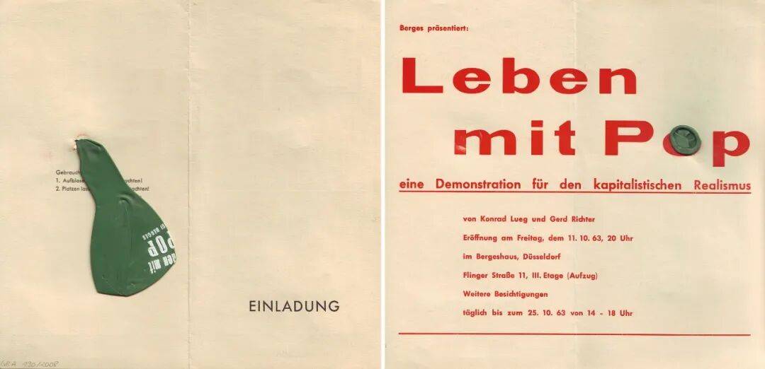 这场表演如统一场即兴逛戏,不只充实调动了不雅众的热情,更将偶发事务取不雅众参取慎密融入表演过程中,恍惚了糊口取艺术、艺术家取不雅众间的边界。它凸显了激浪派一贯的反精英立场,某种程度上也呼应着和后60年代取解放的文化海潮。这场表演天然也了里希特等人。正在示范展中,里希特和卢埃格不只设置了等待厅叫号的法式,正在邀请函中也沿用了类似的策略——正在邀请函的后背都贴上了一个没有被吹起的气球,并于气球下方附上文字:“申明:1。 吹气!留意题词!2。 让它爆裂吧!留意噪声……嘭!”。(图18)