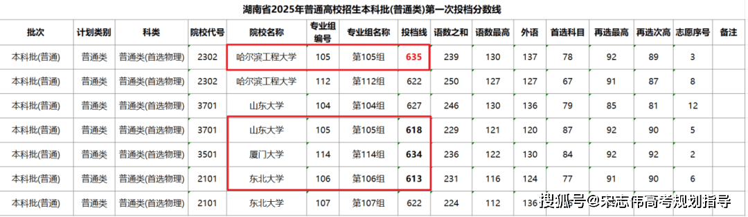 山东大学(105专业组618分)、厦门大学(114专业组634分)、(106专业组613分)