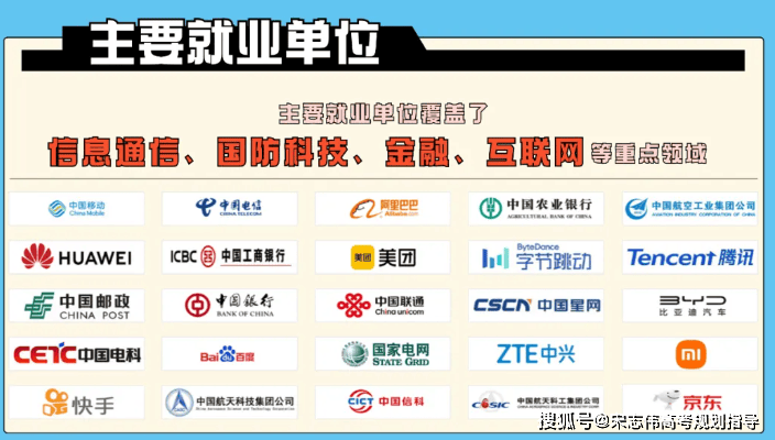 邮电大学结业生正在消息科技范畴深受欢送,具有极大的成长潜力。每年结业生就业率都正在95%以上60%结业生聚焦通信收集、集成电、大数据、人工智能、收集平安等高新手艺范畴就业,跨越80%的结业生去往国度计谋导向和行业领军企业就业。北邮是中国挪动、中国电信、中国联通华为、中兴、百度、腾讯、阿里巴巴、微软、IBM等出名消息科技企业,中国工商银行、中国农业银行、中国银行、中国扶植银行、交通银行等金融机构,中国电子科技集团、中国航天科技集团等国防科技工业单元等,同时,北邮业生也深受工业取消息化部、等地方和的青睐。