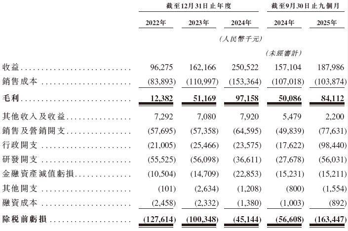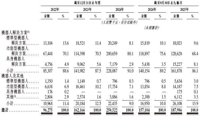 招股书显示,正在过去的2022年、2023年、2024年和2025年前九个月,斯坦德机械人的停业收入别离为人平易近币0。96亿、1。62亿、2。51亿和1。88亿元,响应的净吃亏别离为人平易近币1。28亿、1。00亿、0。45亿和1。63亿元,响应的经调整净吃亏别离为人平易近币1。24亿、0。95亿、0。39亿和0。29亿元。